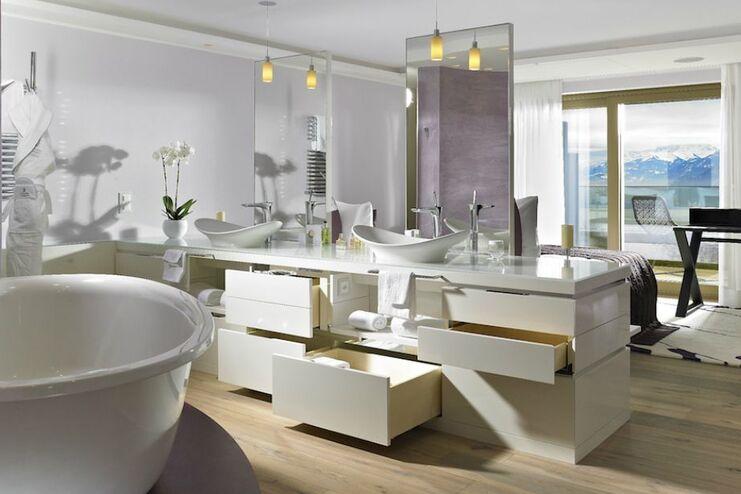 Waschtische, Waschbecken-Unterschränke, Wandregale, Handtuchschränke, Spiegelschränke, Beleuchtungselemente, beleuchtete Spiegel . . .